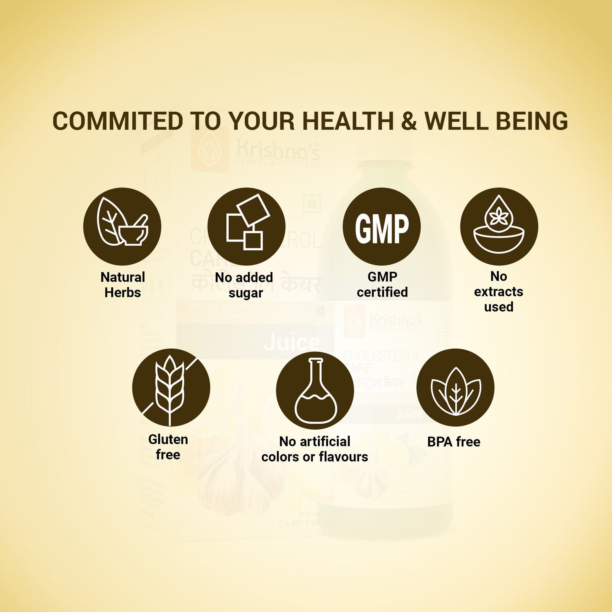 Krishna’s Cholesterol Care Juice is made from a blend of fruits and vegetables. The juice is produced using natural ingredients and is packaged for convenient use.
